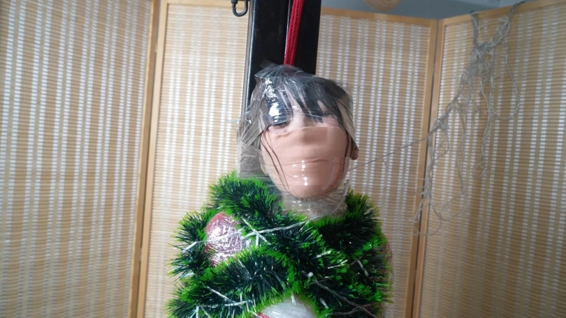 穿着圣诞服装的小0和嗷嗷本想一起共度佳节,却不知为什么分别被紧缚捆绑起来,嘴巴和鼻子都被胶布封住,十分难受。被绑着的她们试图协作脱缚,换来的却只是紧密的连缚,还被戴上项圈用链子栓在一起。一番挣扎后,她们精疲力尽,晕了过去。