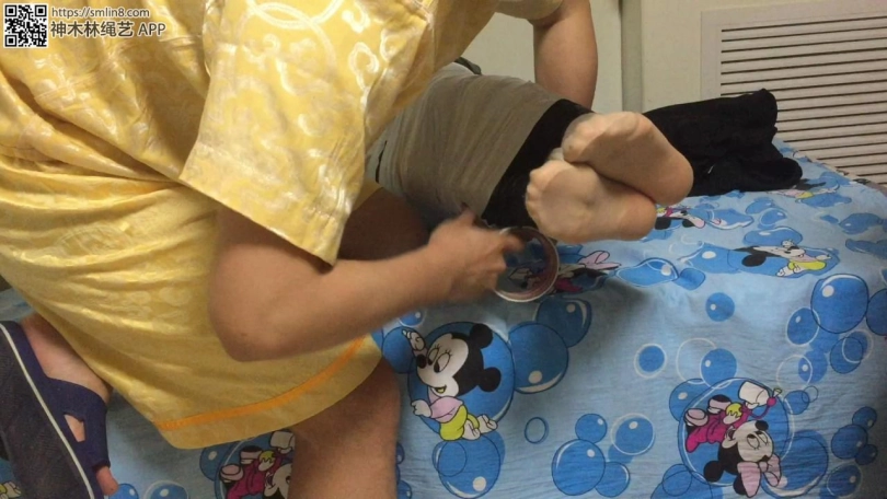 把妖妖捆绑后,本来是想用口塞堵嘴的 但是她嘴太小含不住(樱桃小嘴哈),没办法了,反正蒙着眼睛看不到