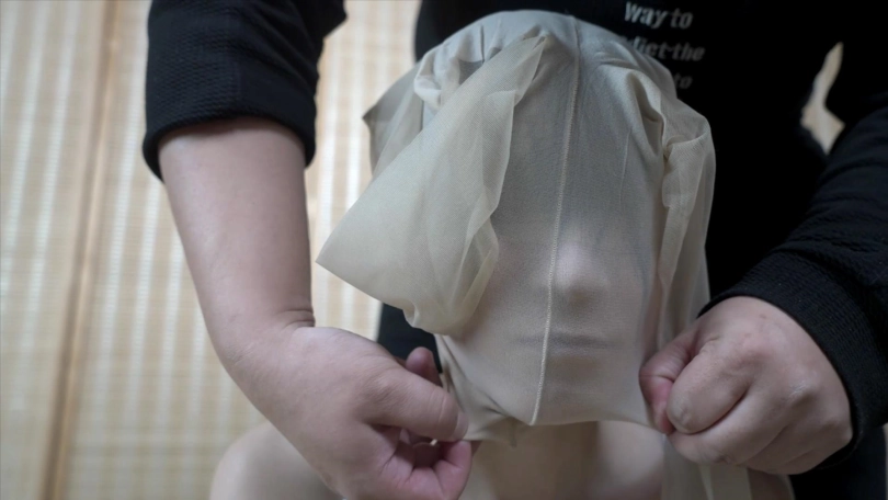 手中握着丝袜以后,每只手都套五层短丝袜,再用电工胶带缠绕三圈确保手没办法从丝袜中挣脱。