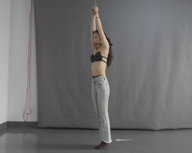 丽丽内衣肉丝镣铐行走,打屁股,口水直流。换黑丝、高跟、紧身牛仔裤。中途脱鞋子,脱裤子,脚尖着地,口球踮脚吊。