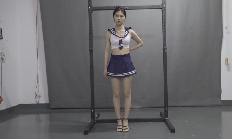 丽丽水手服肉丝直臂后手吊,放置杯子接口水,脱高跟鞋放指压板,把丽丽折磨哭了。