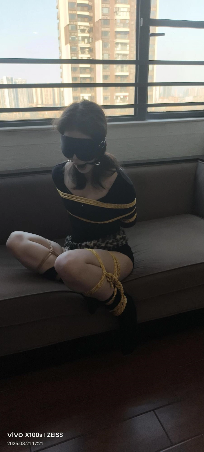 一位身材丰满的小姐姐来体验绳艺,她带上口球的样子知道很好看
