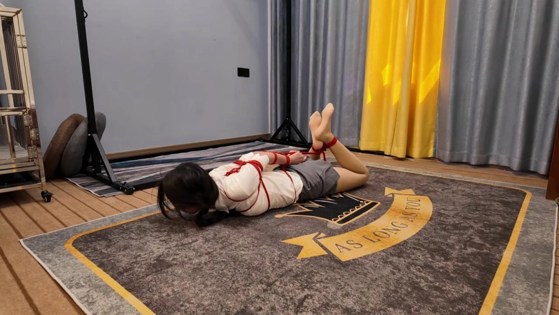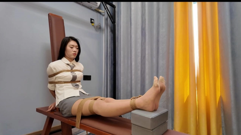 小夏被捆绑到老虎凳上面,tk折磨,小夏还是非常怕痒的,老虎凳折磨完,又紧紧的捆了一个驷马让她自己子啊地上挣扎...