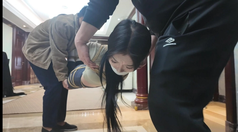剧接上回,芷溪身着瑜伽服,瑜伽裤,白棉袜被直臂紧缚驷马倒攒蹄捆绑在房间中,嘴巴被严密封堵使她无法呼喊,驷马倒攒蹄使她只能扭动着身体朝门外逃跑,可这难于登天。门外的小偷取到了钱又叫来了一个绑匪同伙,想着从芷溪身上再捞一笔钱,二坏人进门,就看到挣扎的芷溪,于是将芷溪抬到了客厅,为了惩罚她的不老实对她进行拳打脚踢,威逼利诱,拍照侮辱。对芷溪一番折腾后,用到逼问出芷溪钱财的位置,并得知芷溪还有个有钱的姐姐,问到信息后,二人仍没有对芷溪怜香惜玉的意思,等待芷溪的是一个口球紧紧塞入芷溪的嘴里,接着再脑后紧紧扣住,芷溪吃疼却只能发出呜呜呜的声音。接着二人将芷溪挣扎录成视频,将视频发给芷溪姐姐,以此威胁芷溪姐姐(大雷)要赎金来救芷溪。可穷凶极恶的绑匪哪会只想拿赎金那么简单呢?二人商量一不做二不休,趁着交换赎金的机会,把大雷一起绑架了。一拍即合,二人给肉货芷溪换了套衣服,接着重新五花大绑手脚,然后为方便行动,二人将耳塞塞入芷溪耳朵里,然后用黑色胶带缠绕封住她的眼睛,再用白布蒙眼,这下芷溪就是听不见也看不见了,虽然二人一人摁住芷溪的头,一人用黑色头套把芷溪的头牢牢套上,把芷溪严严实实的进行了感官封闭,为了防止芷溪叫喊,二人又用红色口球堵塞了芷溪的口部,刚芷溪看不见,听不见,叫不了,动不了,成了一件人人随意摆布的肉货!二人将肉货(芷溪)抬上了MPV的后座,在车上也不能让芷溪放松一下,坏人脱了她的一只鞋子,用力挠她的脚心,听着芷溪被挠脚心而发出的呜呜呜呜呜声音好不享受。一会,到达交易地点,二人把芷溪关在后备箱,然后下车等候来交赎金的大雷,大雷来到了后提出了要先验货,于是二人打开后备箱,大雷看着车上五花大绑,黑头[X_X]头,红色口球堵嘴的少女,提出疑问:戴个黑头套,我怎么知道是不是我妹妹?绑匪说到:你自己上去把头套取下来就知道了。大雷上车取下了芷溪的黑头套,看到了就是自己的妹妹芷溪说了句:妹妹你受苦了。可一会,绑匪也上了后备箱并关上后备箱门,这下,大雷也一起受苦了。后备箱里,绑匪用到威逼大雷,让她不敢动弹,然后又用麻绳将她捆绑起来,捆绑结实后,用一只白色棉袜塞入大雷嘴里,然后用五张布基胶带将大雷嘴巴封上,这下大雷也是手脚不能动,嘴不能喊叫了。被控制并捆绑堵嘴后的二女成了两名猥琐绑匪的玩物,二绑匪玩弄二美女,挠脚心,挠腰,挠胸全都安排上了。二女也只能呜呜呜挣扎,玩累的二绑匪决定将二女运回关肉货的地方,于是发动车辆,出发。发车后,二女在后备箱挣扎并呜呜呜但也无济于事,只能等待命运的安排!