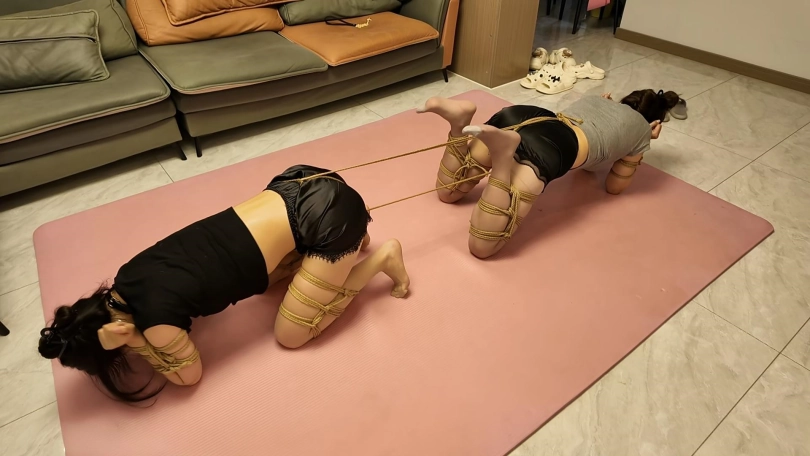 双M佳佳和小夏一起调叫,全部先口舌训练一下,犬姿捆绑,爬行,鞭打,重点来了,给她们两个绑上股绳,用股绳固定,拔河,赢了又奖励,具体谁能赢,还要看视频,三局两胜,比塞结束,终极享受,俩M按摩,手按不过瘾,命令她们两个都用胸部按摩,太舒服了