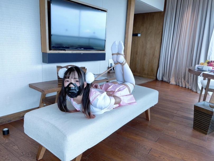 封堵全过程放送~本次采用了驷马拘束的方式,妹子在止息中拼命踢蹬小腿,但是奈何驷马把脚腕和后背连接了起来,连最基础的伸直双腿都做不到呢!