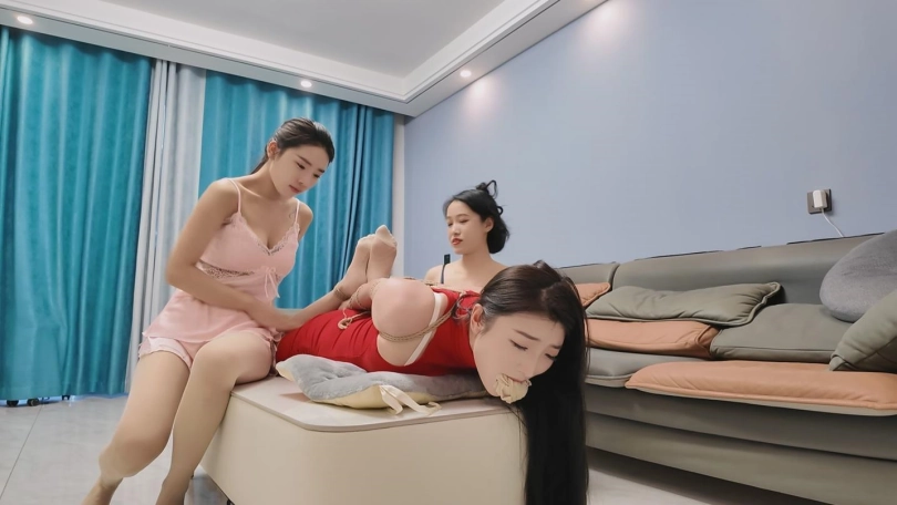 佳佳大意睡着了,被姐妹俩偷袭绑了起来,姐妹俩开始有仇报仇,玩累了姐姐让妹妹去报警,姐姐看押佳佳,佳佳解开了束缚,再次迷晕了姐姐,并威胁回来的妹妹脱下自己的袜子堵嘴,姐妹两个被脱的只剩内衣,被佳佳新一轮玩弄。