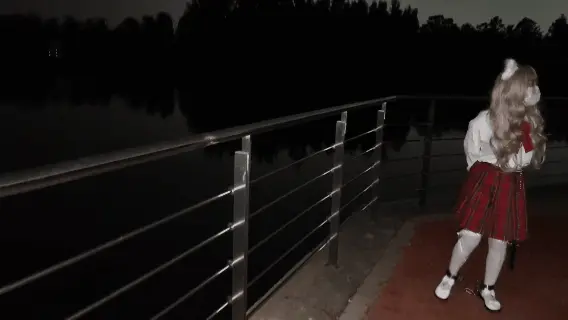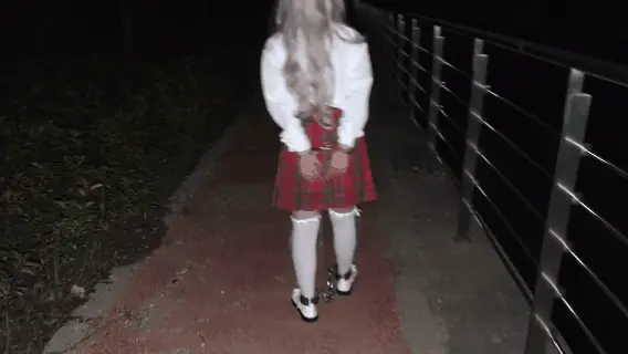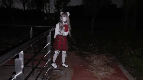 苏苏今天戴着连体的手铐脚镣来到了运河旁边,天已经蒙蒙亮了,河边不时地驶过几艘巨大的船舵,苏苏戴着镣铐好奇地看着这些庞然大物,为了不让她撒丫乱跑,牵着她走了一段路,可之后依然还是不老实,于是把她锁在了运河旁边的栏杆上,就把钥匙放在离她的小脚丫很近的地方,但是她费了九牛二虎之力也够不到,她很不服,只好继续给他戴上眼罩和口塞,剥夺了视觉和语言能力后,不远处的船逐渐向他行驶过来,苏苏只能在恐惧中不断地挣扎,远方的天际也开始逐渐泛白......