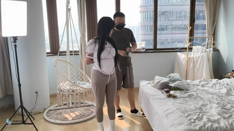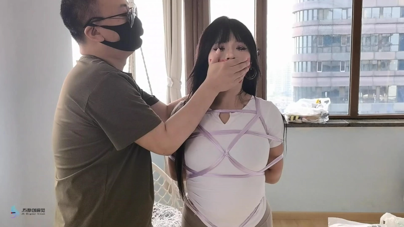 【JS】【曼妮】绸带驷马捆绑瑜伽服白棉袜堵嘴包头恋足棒棒刺激