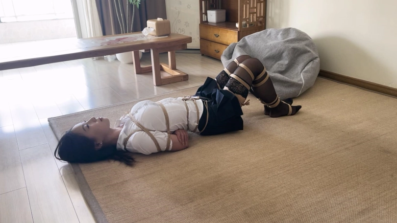 肉肉的圆脸妹子小芜,短裙吊带黑丝,日式后手+并腿驷马+口球