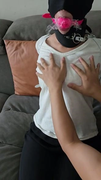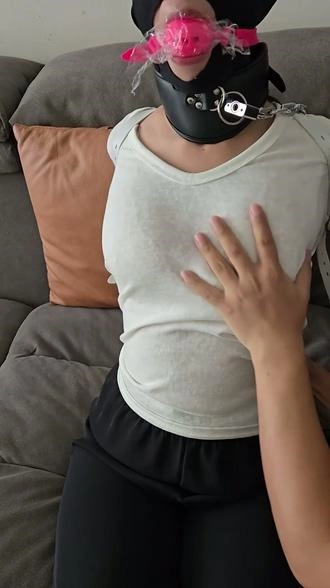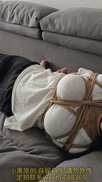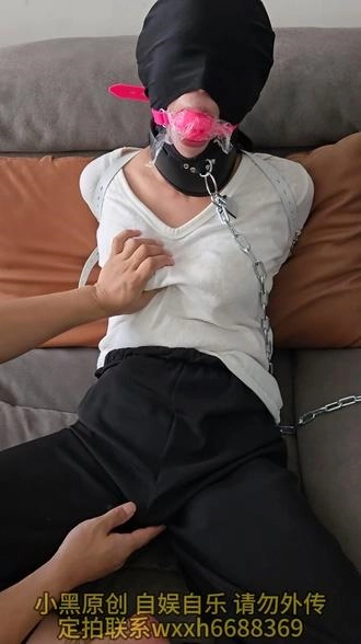 【小黑】新人端庄大胸淑女来体验捆绑,看到道具有点紧张,绑好以后更害怕了,单手套拘束大口球堵嘴,拘束好以后疯狂揉胸,内置[X_X]强高,五花驷马内置[X_X]强高