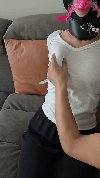 › 【小黑】新人端庄大胸淑女来体验捆绑,看到道具有点紧张,绑好以后更害怕了,单手套拘束大口球堵嘴,拘束好以后疯狂揉胸,内置[X_X]强高,五花驷马内置[X_X]强高