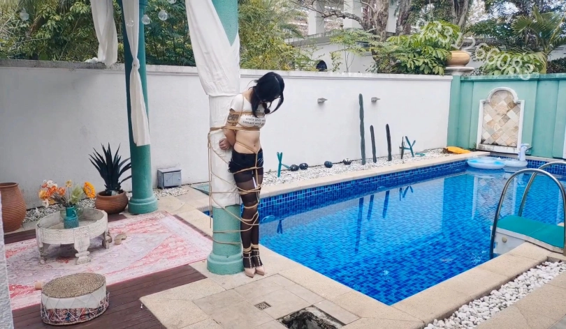 【欢乐谷】被捆绑放置在泳池别墅里尤物以及深度尺度调教