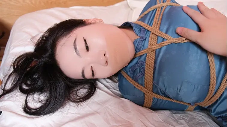 民国风旗袍小姐姐,被绳子紧紧捆绑,肉色肌肉贴封着她的嘴