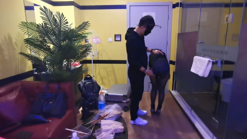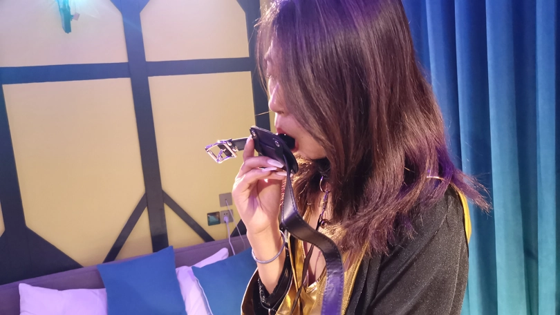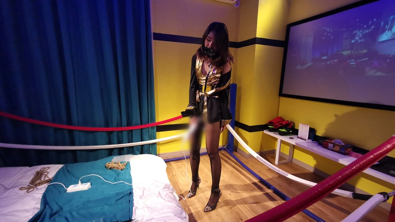 瑾萱穿着性感睡衣,黑丝高跟,很是妖娆。带上皮手铐脚铐,命令其趴在地上爬行,并用牵引绳牵引。皮鞭抽打。这也是她第一次尝试狗奴TJ;