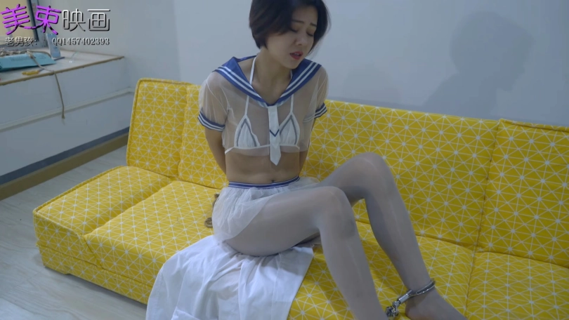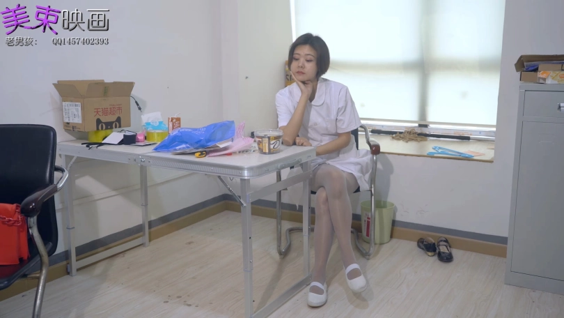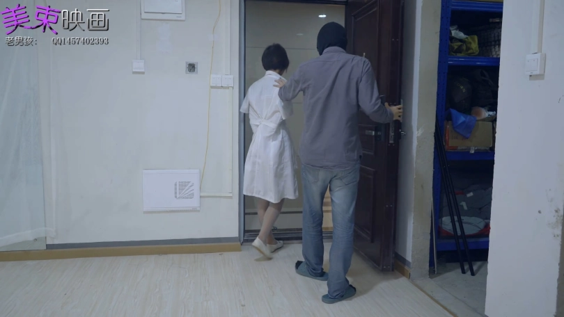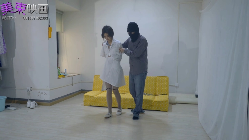 护士妹妹进入房间后被歹徒用金属拘束,被玩弄美足后,企图逃跑,最后被歹徒披上护士服押走。
