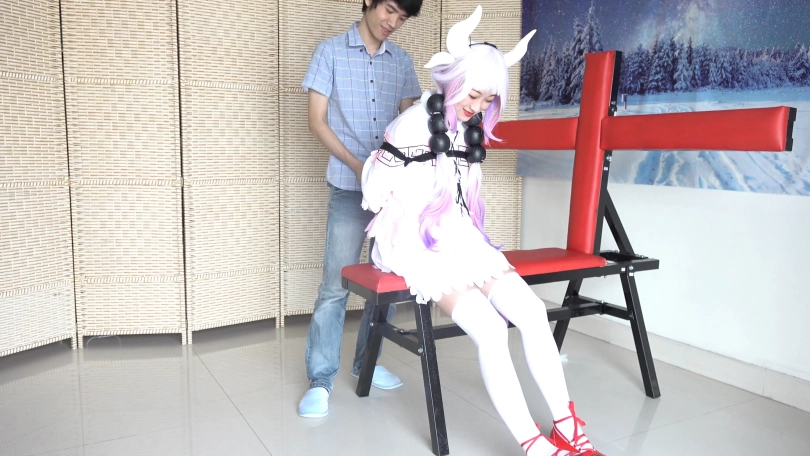 › 【逍遥】【cosplay TK】龙女仆康纳 白丝老虎凳,眼罩,口球,震动牙刷Tk 妹子被Tk的快哭了