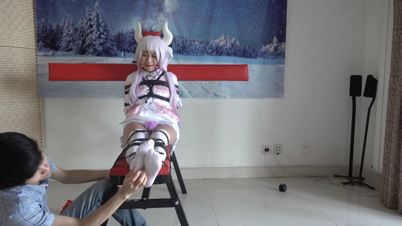 这次是龙女仆里康纳的TK,用了新的老虎凳,还有眼罩和口球,妹子被挠的欲生欲死,就差没哭出来了