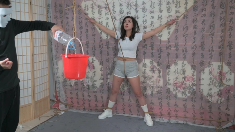 没有费太大事地说服雪碧尝试一下水桶,发现雪碧的特点是每次开始的时候总是很快乐,丝毫不考虑接下来的事情。根据经验,水桶刑罚最痛苦的不是刚加水的时候,而是随着妹子的挣扎越陷越深,且看她是如何陷入无助呻吟的境地吧。