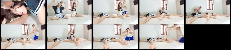 June and May dressed in maid outfits and get executed by the viewer with various methods such as shooting, stabbing, choking, and neck-snapping.