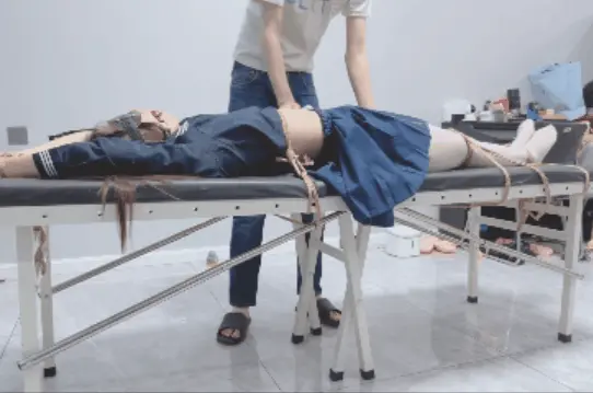 说到失禁,顺便提一下这次痒刑是憋尿的,糖糖事后和我说她拼命想阻止尿意,但是被挠的已经崩溃了,几乎失去思考能力,拼命夹紧也无济于事,虽然努力憋住了,但还是一股一股流出来,结束时nk已经湿透了,刑床上也留下水迹...