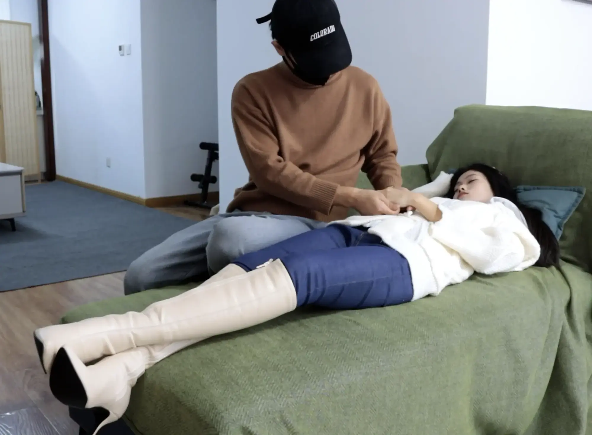 【得意客】沉睡的牛仔裤长靴女侠浑然不知危险逼近