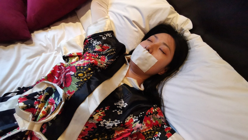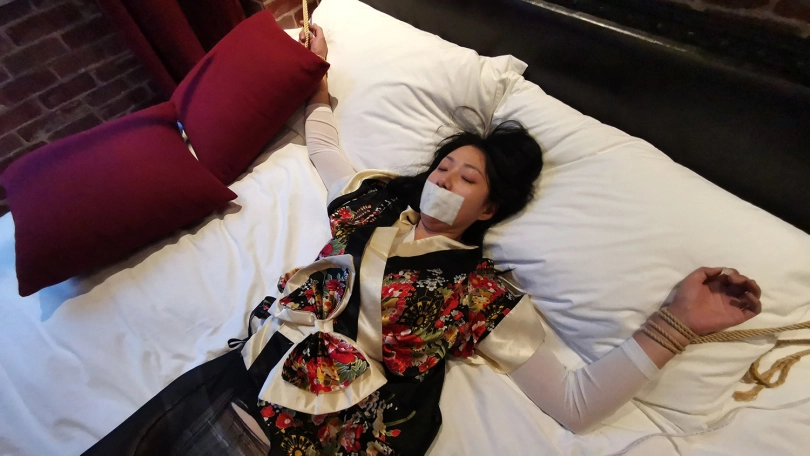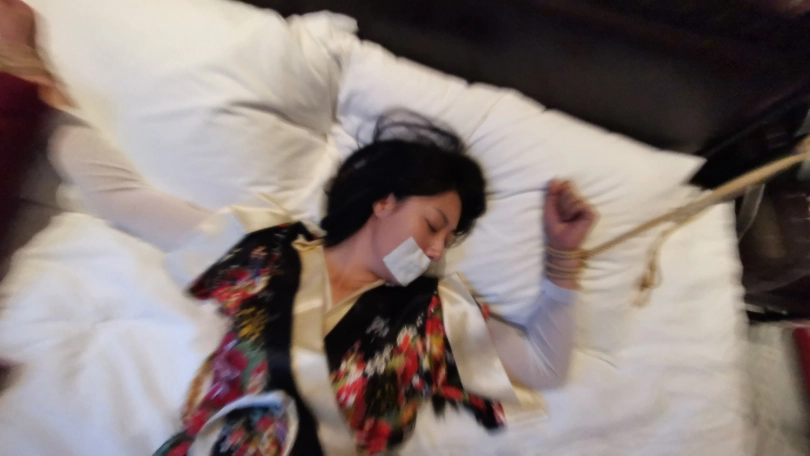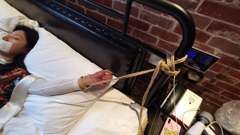 【JS】DM 日系性感睡衣 床上大字捆绑 撕袜 封嘴 DD强震