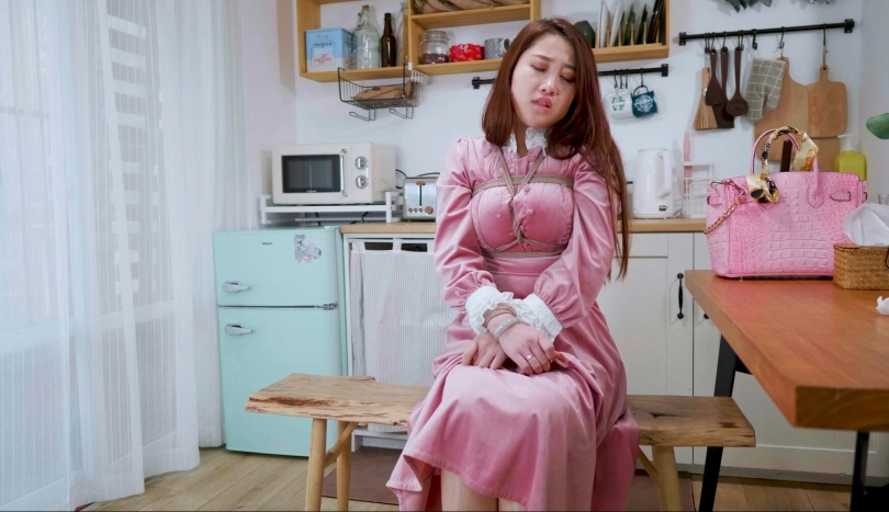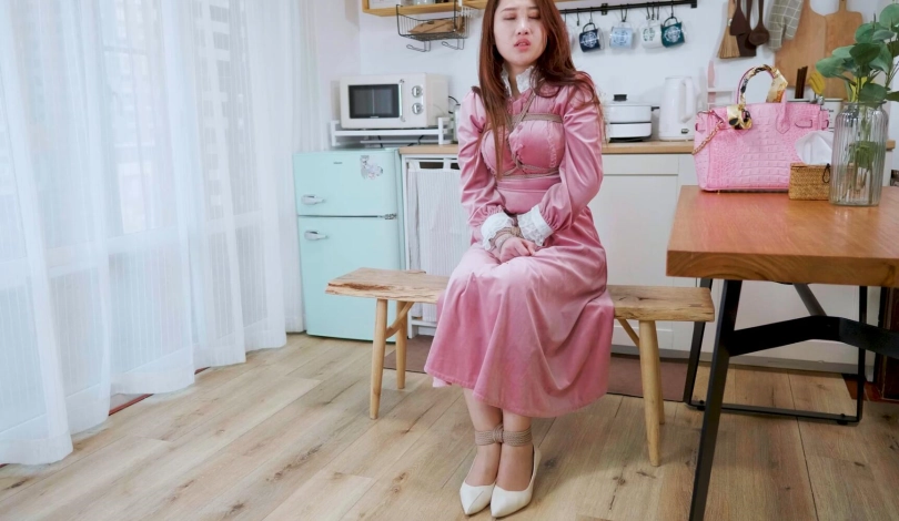 【4K映像】粉嫩佳人,粉色长裙,粉色包包,连口球都是粉的