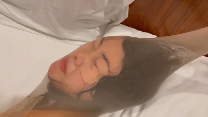 薄丝袜包起来可以看到扭曲的五官。好家伙!居然还这么漂亮,索性直接拿起头部丝袜往上拉!!让你羞辱不堪却又无能为力~~