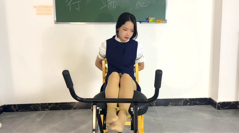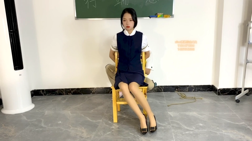 第二天正式上班,工作人员拿来一套空姐服让素素换上,并且练习走秀,走完秀把素素固定在椅子上脚也完全固定好,拖了高跟鞋进行tj和 tk 素素求饶也没有用,最后还把素素 绑到四方桌上,进行tj到gc后 离开,让素素这样呆着!