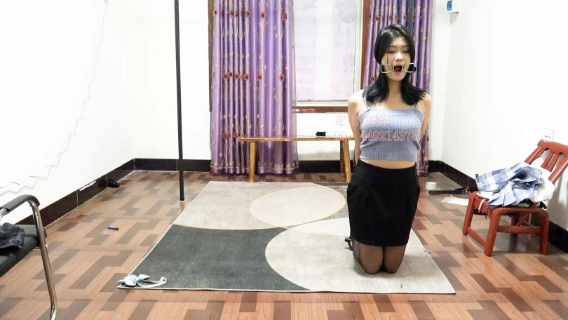 【子衿】菲菲黑丝镣铐网调实录,口枷,单脚吊,打脚底,扎带绑脚大拇指驷马