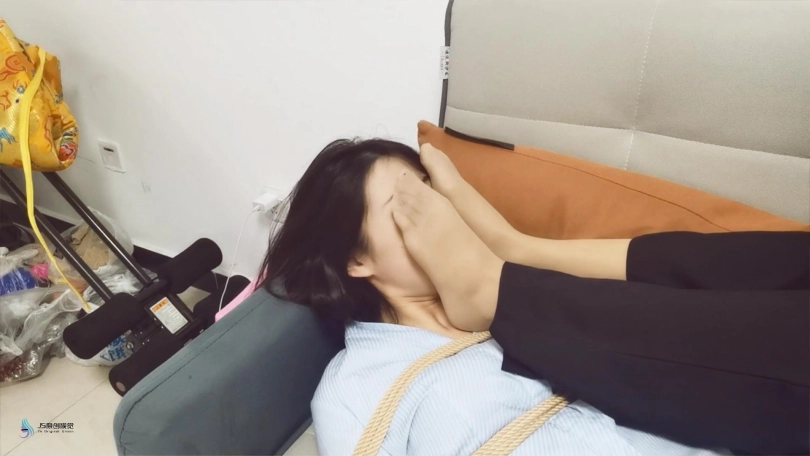 艾可逃脱失败,被瑾萱抓住。为了让艾可顺从自己,瑾萱重新用丝袜堵嘴,玩弄艾可的脚丫。并将自己的脚放在艾可的脸上舔脚。被带到卧室,换上连体衣,用丝袜捆绑玩弄。。。