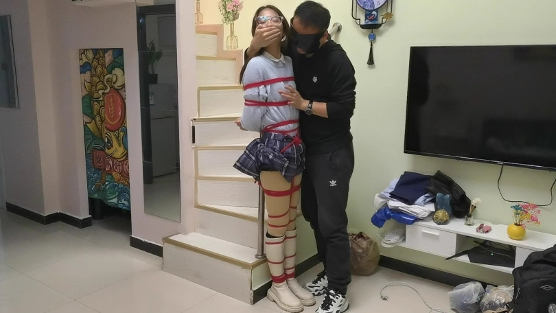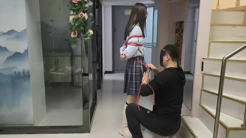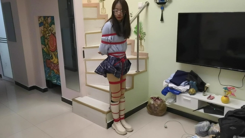 【JS】采文 绑在栏杆上的女孩日式全身紧缚红绳长靴