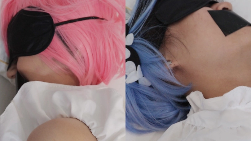 蒙面人生气了,直接把两姐妹按在床上,挠遍拉姆蕾姆两姐妹全身,听着两姐妹此起彼伏的惨叫呻吟和不止的笑声,被封着嘴巴哼哼唧唧的也不知道说了些什么,两个女仆不停地扭动的挣扎(一个小彩蛋,蕾姆妹把假发都挣脱掉了)