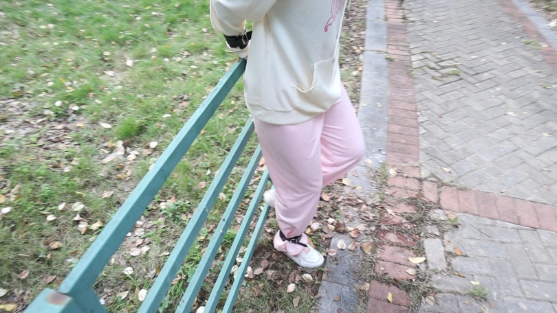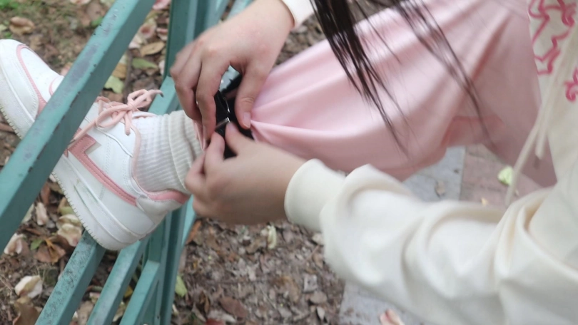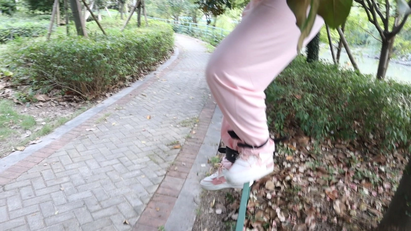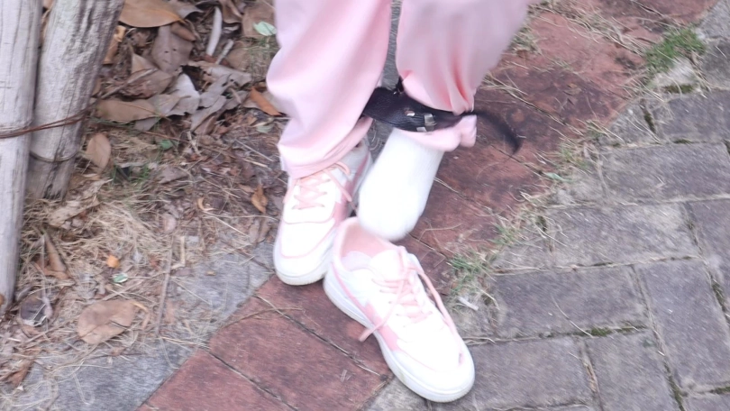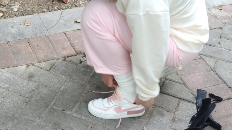 粉色运动套装白袜子+粉色运动鞋 在城市里的野外丛林