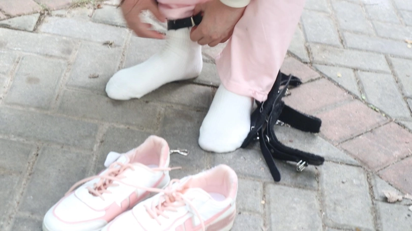 接下来逐渐上难度 首先先是脚镣 刚带上的时候酥咔妹妹还蹦蹦哒哒的瞎跑