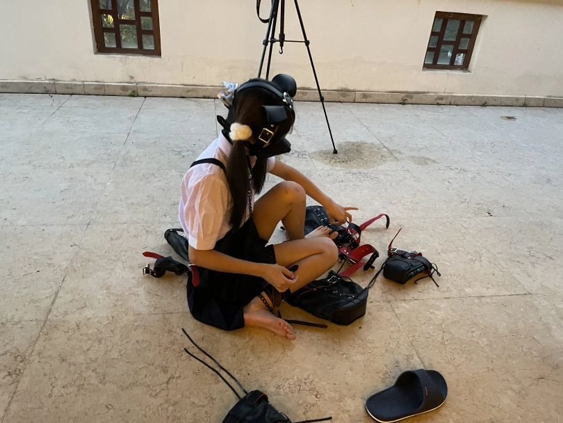 为了视频有“户外遛狗”的羞耻感和效果,特意开了个带庭院的套房~
