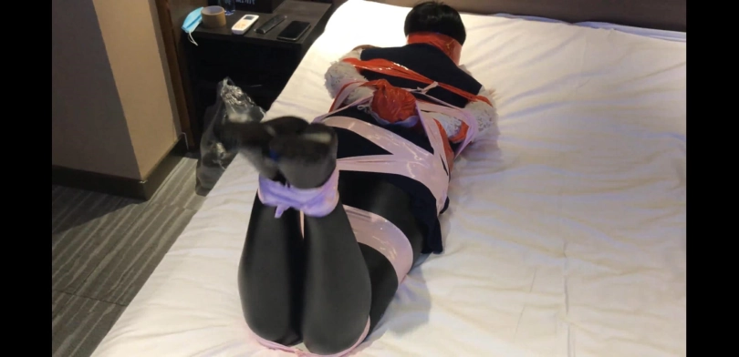 上下两集,本集为黑色连袜皮裤胶带缠绕挣扎加挠脚心,下集为麻袋和黑塑料袋包裹挣扎摸小jio。