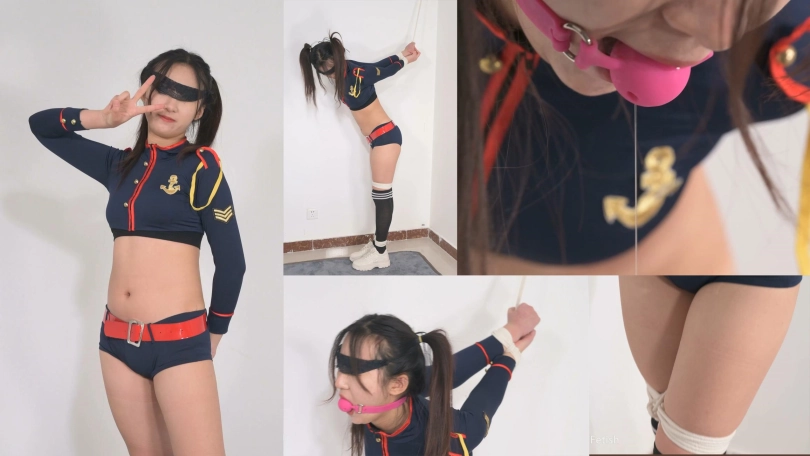 【撒琅制造】双马尾情趣服后手直臂吊绑--口球、口水、运动鞋、长棉袜