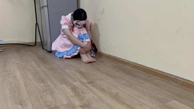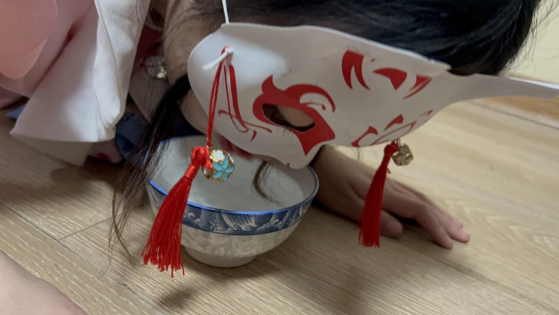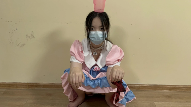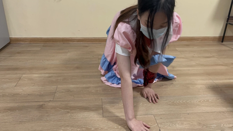 10女奴饿的不行蜷缩在角落,在远处扔下来狗粮在小盆,毫无尊严的迅速爬去吃掉。(不能用手)
