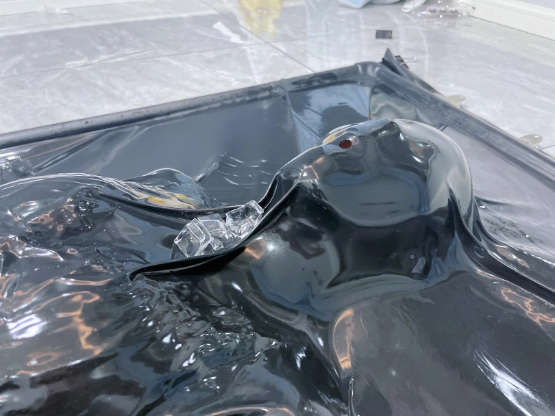 在茶茶享受这绝对紧致的拘束感的时候,我恶趣味的开启了家里的制冰机——拿起冰块在茶茶可爱的娇躯上摩擦着:有制冰机,冰块儿管够!同时几乎把持不住,隔着真空床仔细抚摸茶茶的每一寸身体、恶趣味的挠茶茶的腰间、脚底、疯了一样挠茶茶痒痒。茶茶的娇躯紧绷着,在真空床的压制下动弹不得,只能微微颤动着..这样的身体、这样的茶茶..太可爱了啊!这谁顶得住啊!