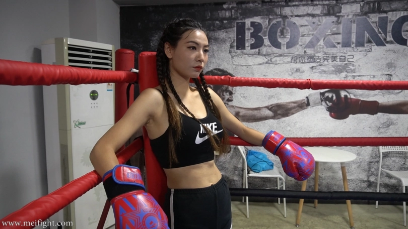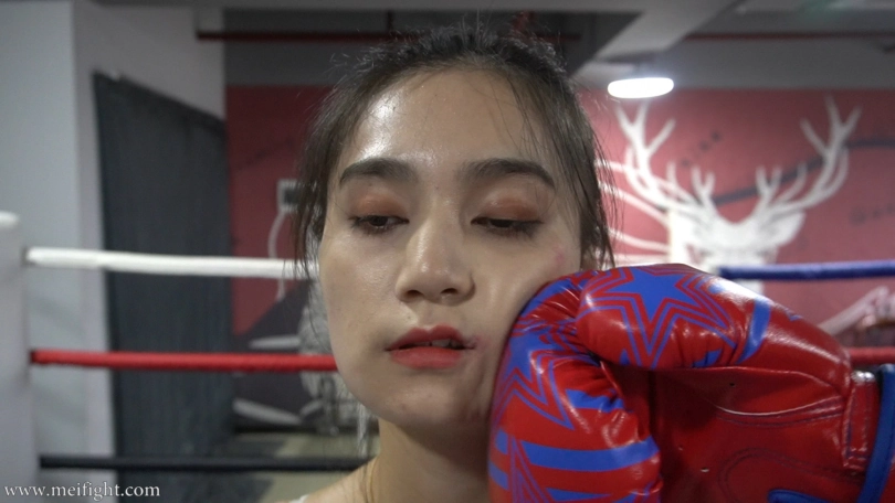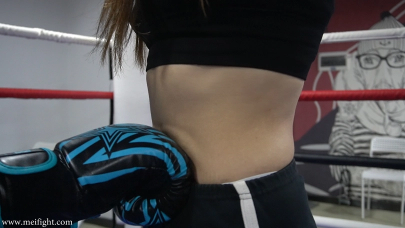 Ling and Ppei were having a boxing match. Although Ppei was a novice, she looks stronger. Ling was more experienced. It seemed like a fair fight...