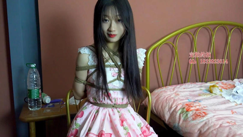 【子衿】洛丽塔女孩第一次带口球,不一会口水就流出来了,急的直跺脚