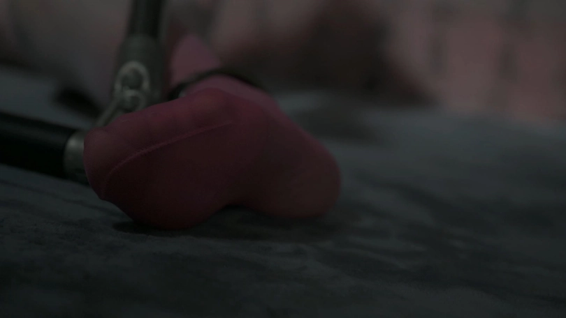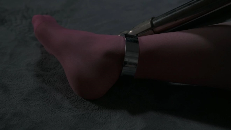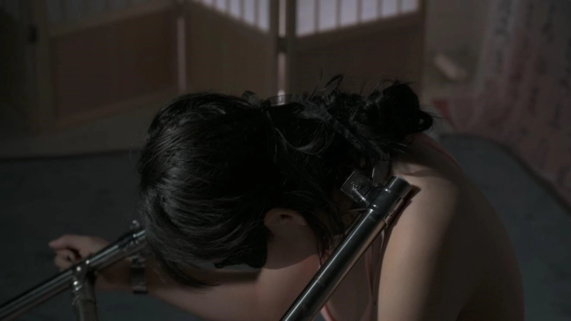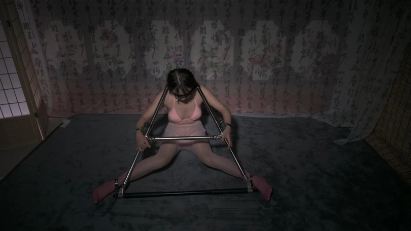 汤圆被锁在一个特制的三角型铁架上,脖子、双手和双脚分别固定住。她一直试图挣脱这个看似简单的架子,无论想挣开、站起身还是徒手拧螺丝,都是徒劳。当她被放倒的时候,想起来也几乎不可能,特别是她的呻吟声,简直太销魂了。