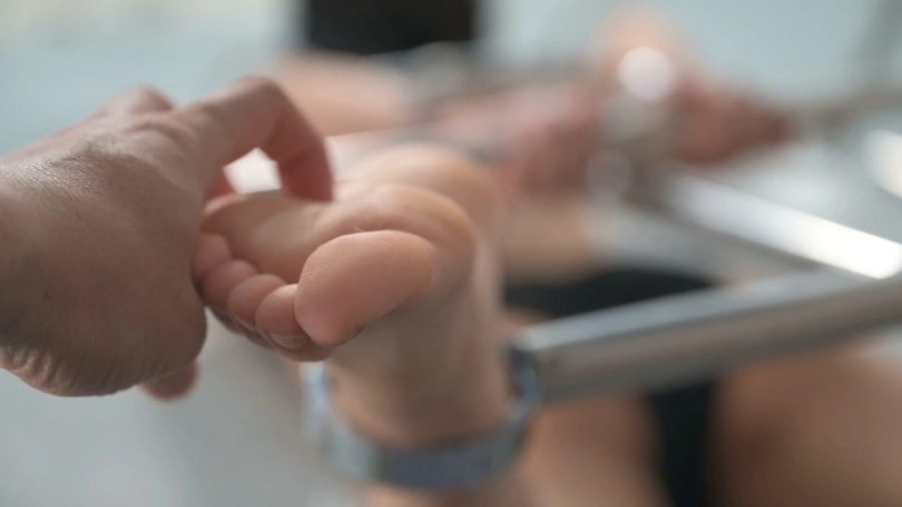 汤圆直臂和并肘的确很费劲,因此把架子调整到宽距,就这样下来以后手都不能动了,一开始绳师还以为是她夸张,不过看她在那缓了好长时间,才知道这姑娘忍耐力还是很赞的。这次TK她的脚心,听她大喊不行了,再看她身体的反应,基本是到极限了。而且,她好像是被小黛传染了,胸部一有压迫,就会感觉自己会被憋死,后半段一直在那里大喘气,真是哭笑不得。