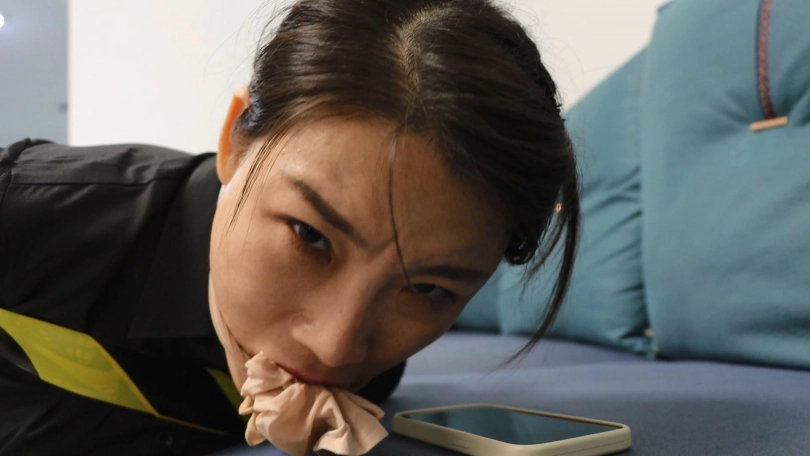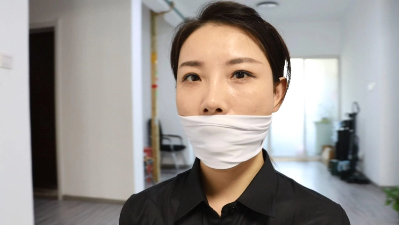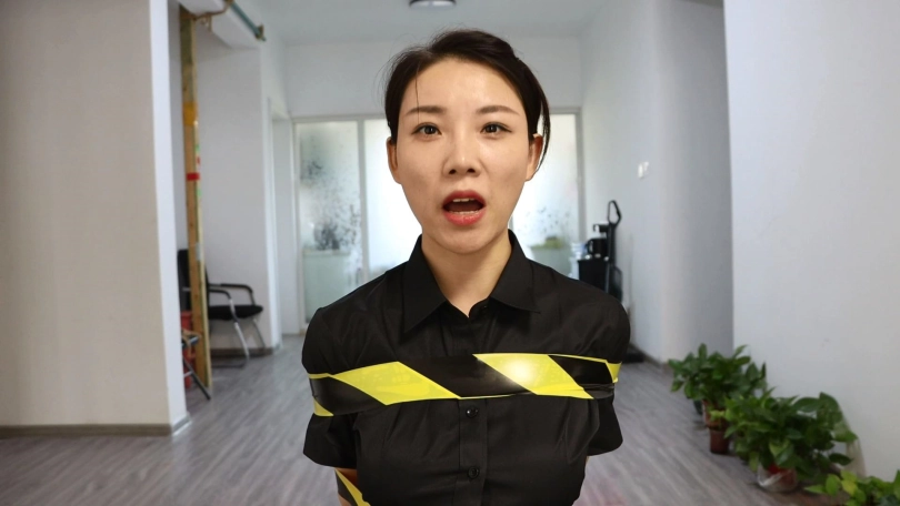 漂亮大方的女主持,为女性朋友讲解遭遇劫案时,如何安全有效的挣脱自救,并亲身演示两种捆绑方式