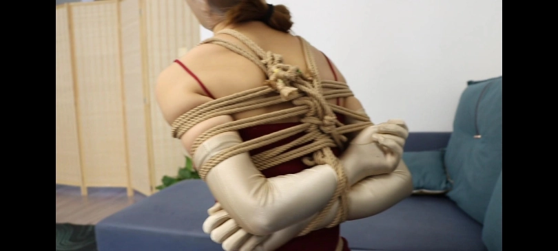 女人想体验捆绑的感觉,于是换上性感的衣服(长手套,吊带裙,舍宾袜),让男朋友把自己绑起来,男友答应了她的请求。但是女人没有想到,男友的捆绑方式是那么的特殊,自己还被堵上了嘴然后丝袜套头,最后男友称有点事情要出去很久,走之前还用胶带封住了女人的眼睛。。。。。。