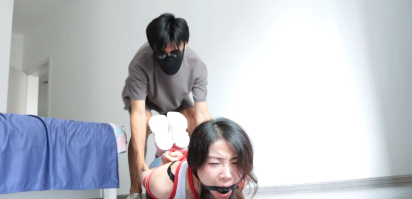 训着女人的呜呜呜声,男子来到衣柜停下,打开可见一女子被结结实实捆绑,不仅嘴眼被封堵还被丝袜套着头,面对男子的压迫,女子只能呜呜呜的,在男子将其绑成驷马倒攒蹄后,宣告着男子即将成为皇帝,而女子等待她的将是痛并快乐的命运!