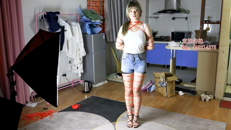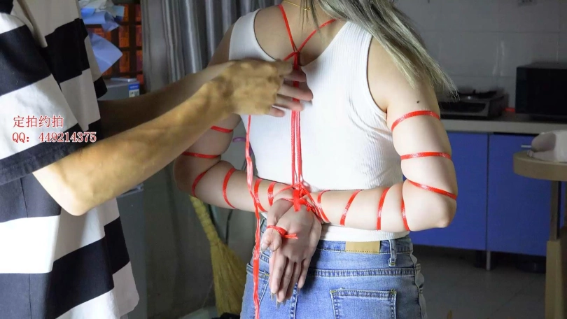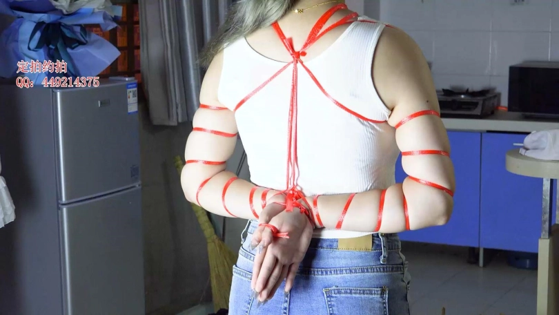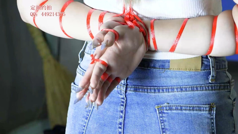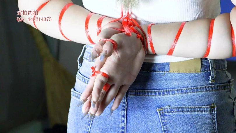 【子衿】美琦细绳勒脖五花反手绑手腕手指站立绑腿,捆绑细节