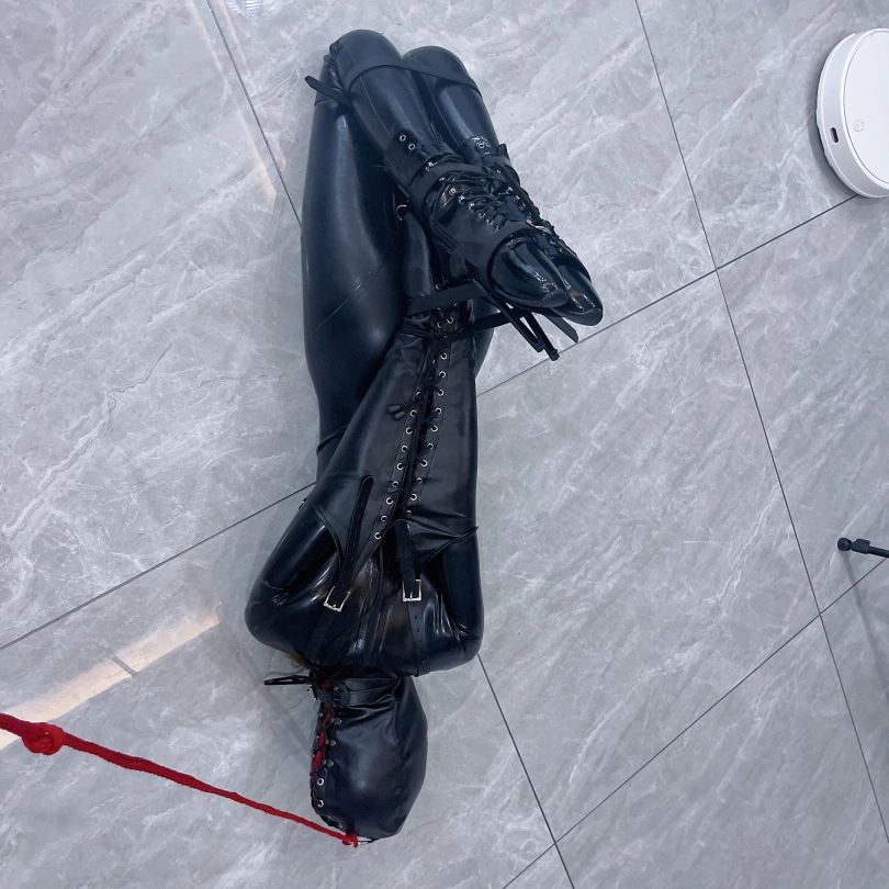 1.此时的茶茶已经被拘束成一个乳胶肉块、动弹不得,别说站起来了,连挣扎都别想。给茶茶设立解脱条件:旋转180度掉头成功或自己解开拘束,失败则惩罚。